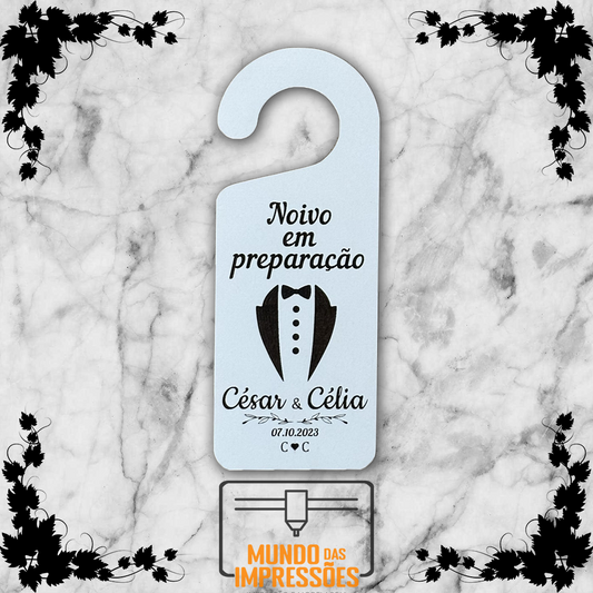 Aviso de Porta para Casamento Personalizado em Madeira - Noiva/Noivo em Preparação