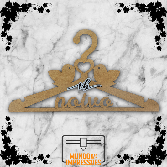 Cabide de Casamento Personalizado em Madeira - Noiva/Noivo Iniciais e Pássaros