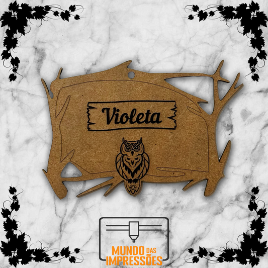 Placa de Identificação Animal Personalizada em Madeira - Coruja