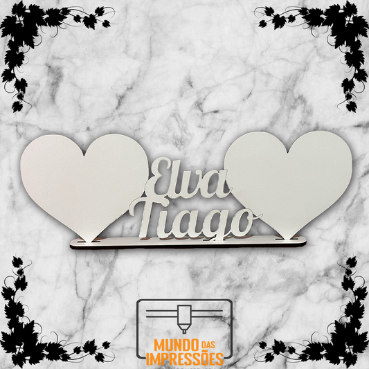 Placa Corações Personalizada em Madeira - Com Nomes e Opção de Fotografia
