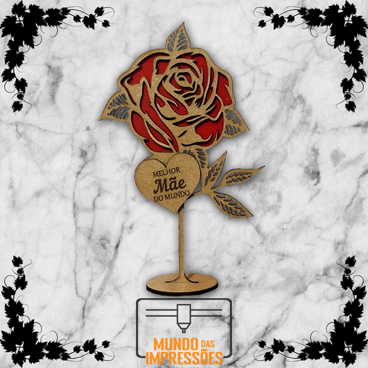 Lembrança Personalizada em Madeira - Rosa com Mensagem Especial